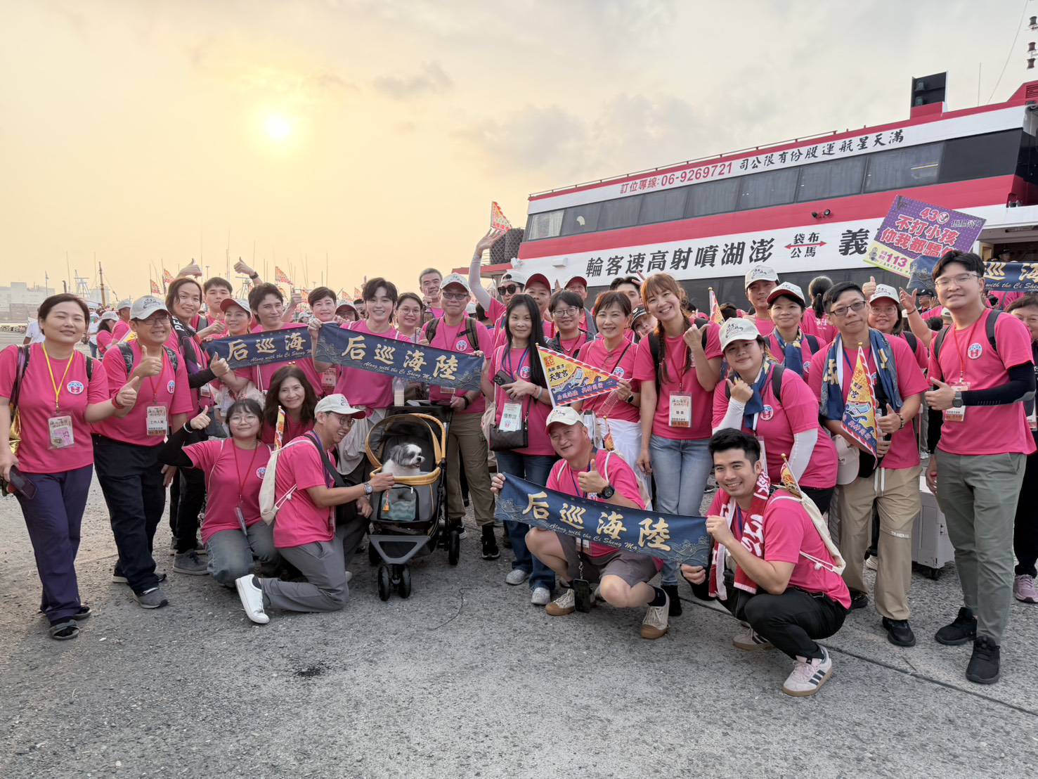【記者 彭可可/綜合報導】旗津天聖宮於4月17日至19日舉行了新型海陸進香盛會,這場活動不僅是信徒們虔誠的宗教活動,也是社會關懷的重要展現,吸引了眾多信眾及社會各界人士的參與。此次盛會期間,榮泉彈珠汽水總經理陳滿卿的全力支援顯得尤其突出,她不僅贊助產品,更親自陪同進香,表達對這次活動的重視與支援。