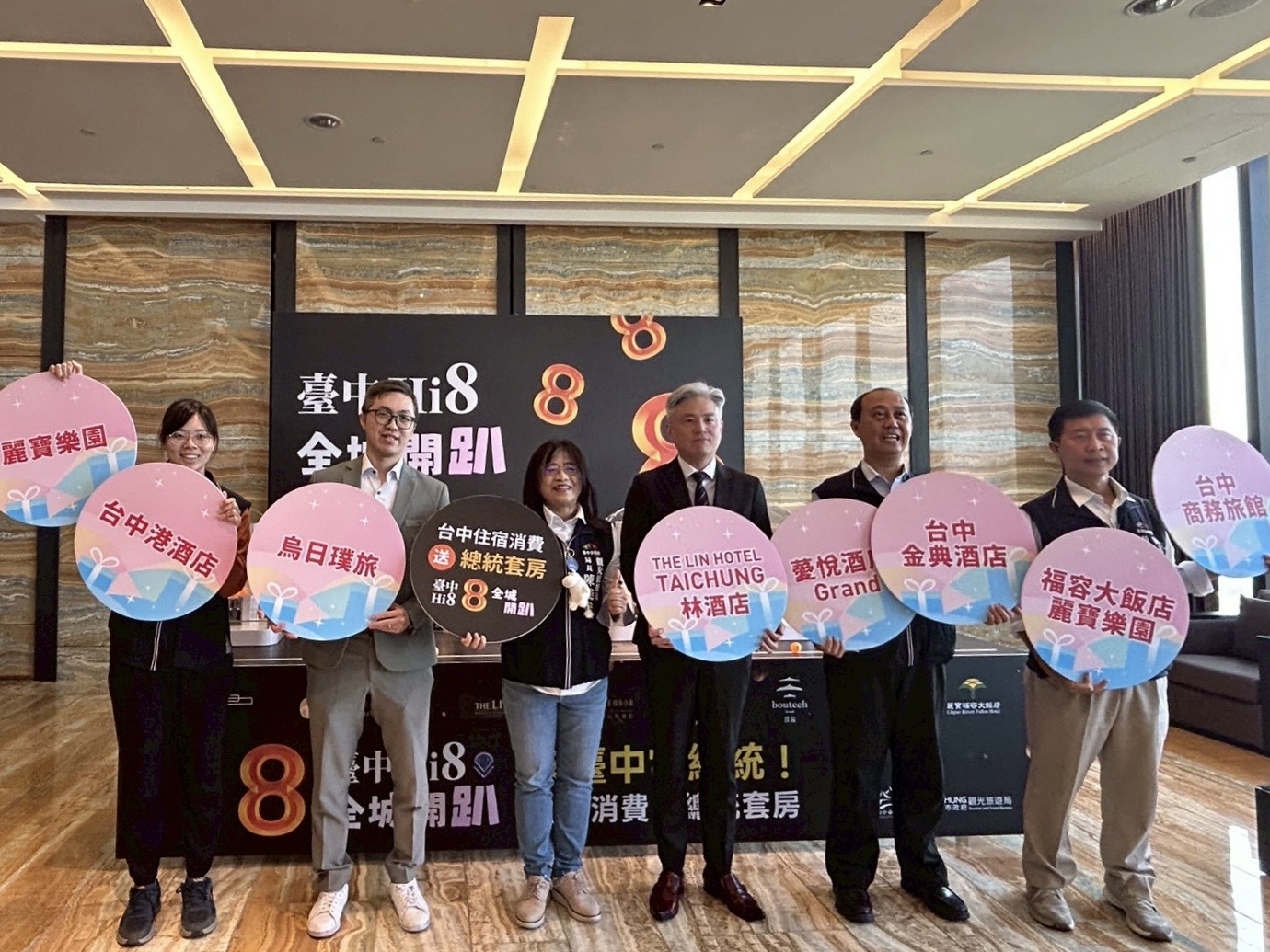 台中市政府觀光旅遊局持續推動「台中Hi8 全城開趴」系列活動,深受民眾關注的住宿行銷方案「來台中當總統-住宿消費抽總統套房」邁入第3場抽獎活動,28日在林酒店由觀旅局長陳美秀、台中林酒店代表及烏日璞旅代表出席抽獎儀式,邀請民眾透過實際入住台中優質旅宿、登錄消費發票,以總統級視角體驗台中城市魅力。