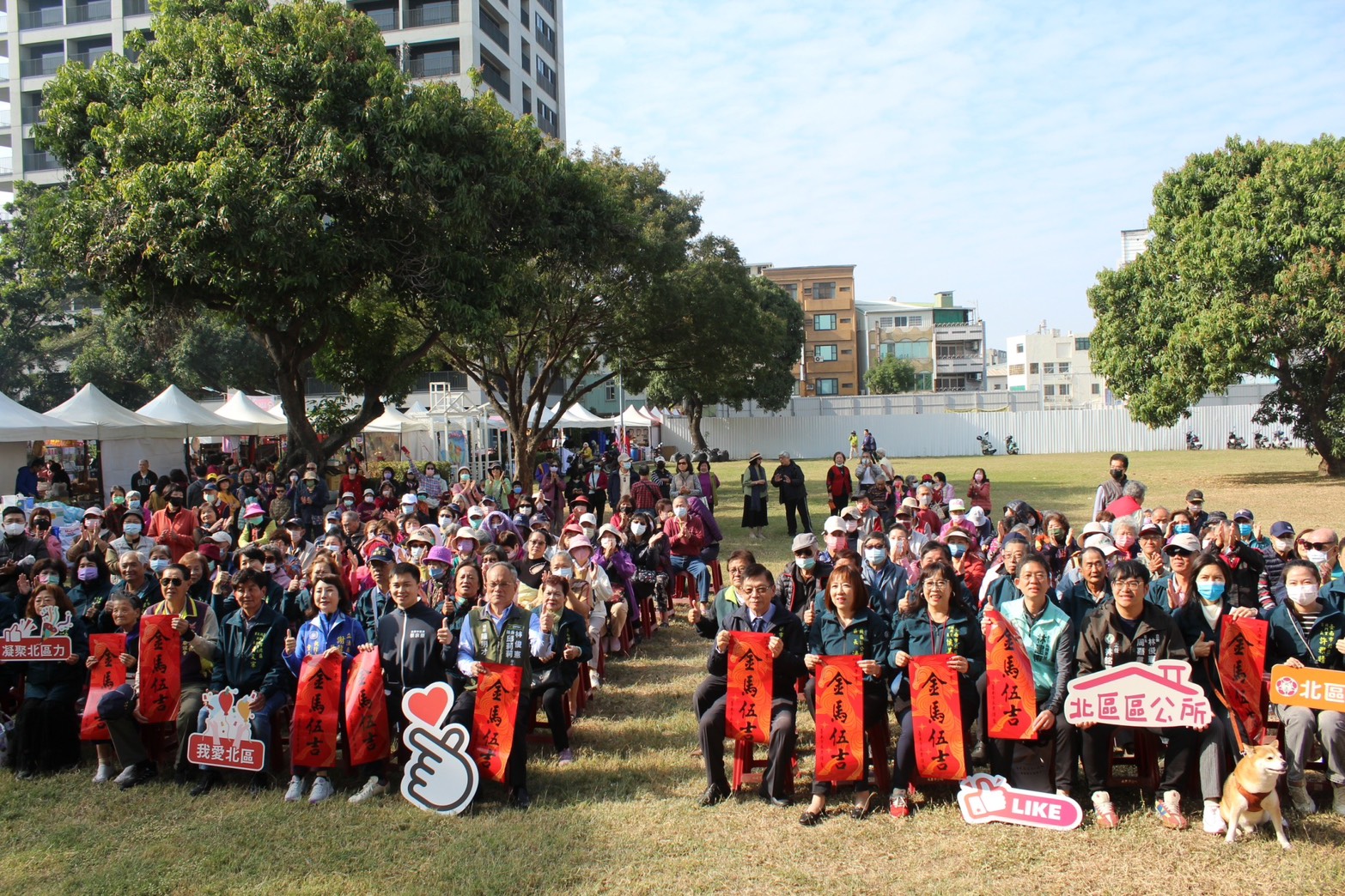 ▲北區區長潘寶淑主持眷村文化美食節開幕儀式,與多位貴賓合影。(北區公所 提供)