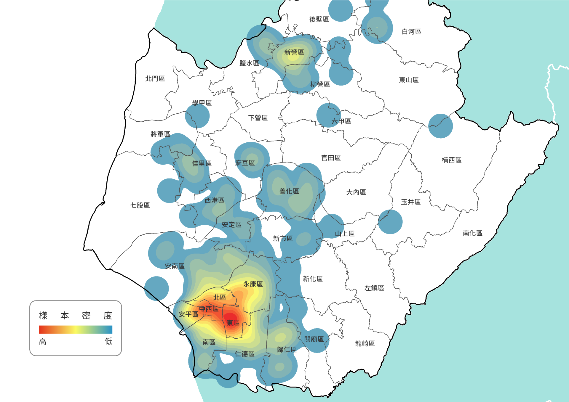 ▲臺南市114年11月清理後樣本數分布圖。(地政局 提供)