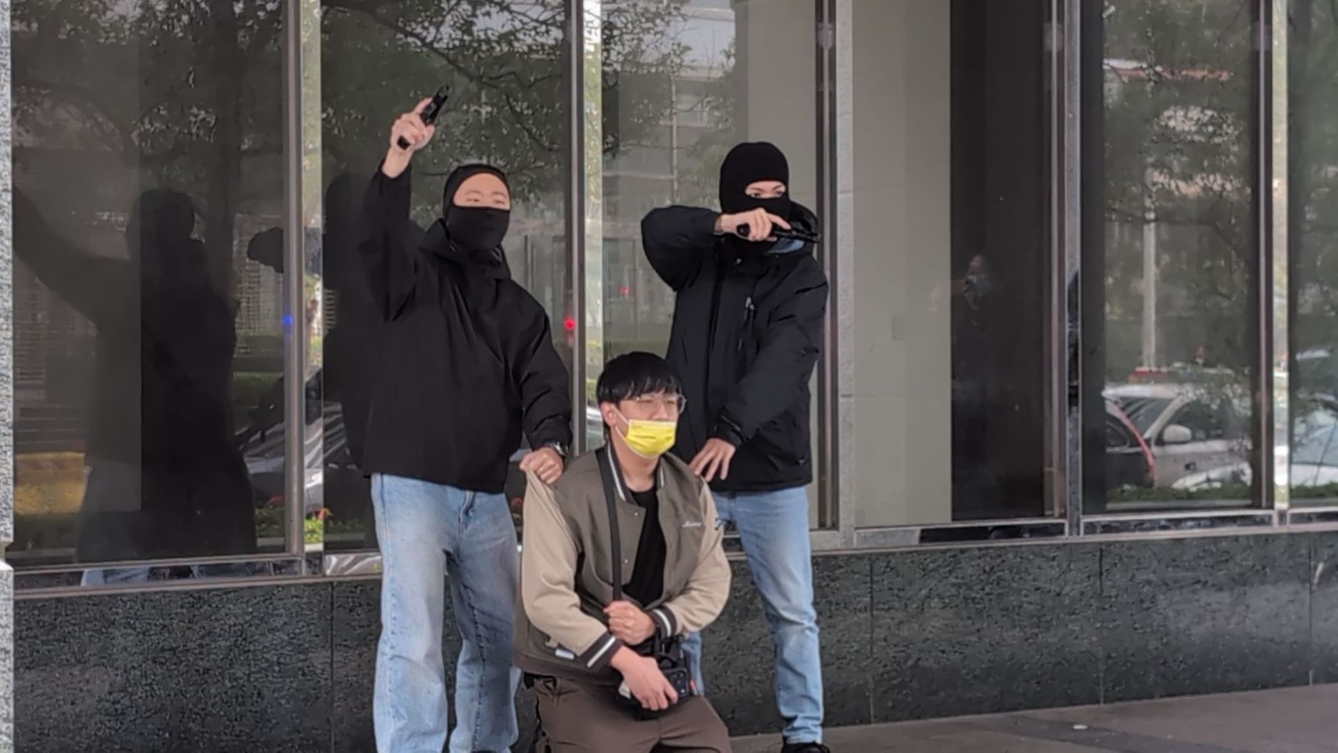 2位蒙面歹徒挾持人質超逼真。圖/翻攝