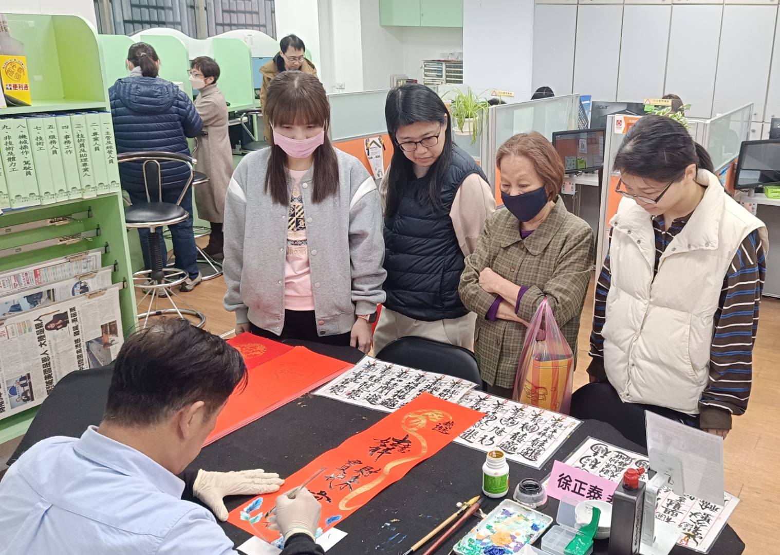 農曆新年將至,為陪伴求職民眾迎接新氣象,勞動部勞動力發展署北分署基隆就業中心今(29)日上午舉辦「名家揮毫贈春聯」活動,邀請徐正泰等三位書法名家親臨,為洽公民眾書寫春聯,讓現場增添濃厚年節氣氛與人文墨香。