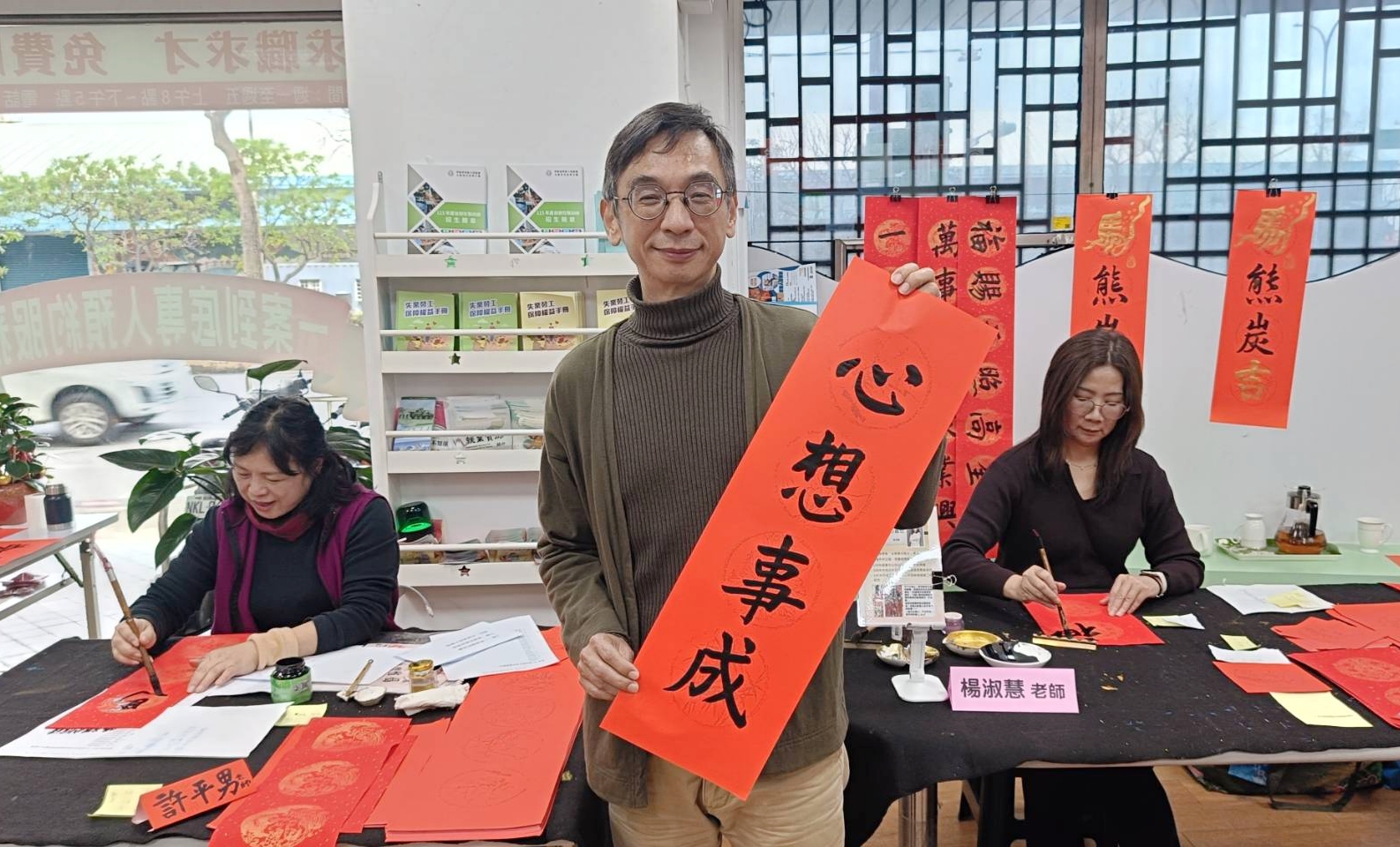 書法名家徐正泰親自揮毫寫春聯,現場超吸睛。圖/翻攝