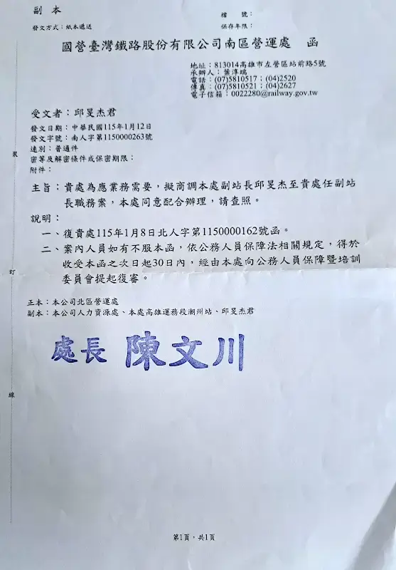 常喊「解除契約」引發熱議的台鐵潮州副站長,將要北調了!