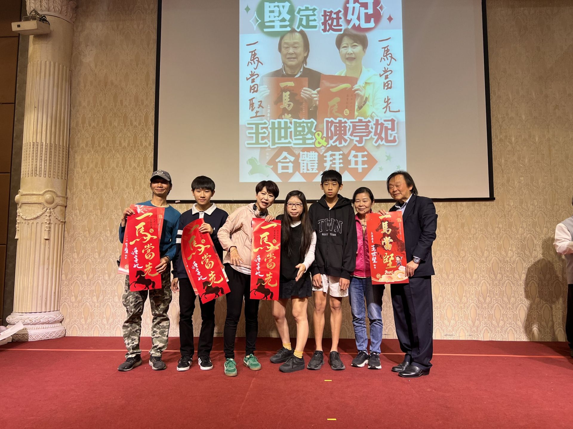 此次活動中,王世堅廣受支持者敲碗索取的「一馬當堅」春聯,與陳亭妃日前公布象徵行動力的「一馬當先」春聯同場亮相。外界解讀,兩款春聯一「堅」、一「先」,不僅文字形成對話,也象徵政治堅持與行動向前的結合。