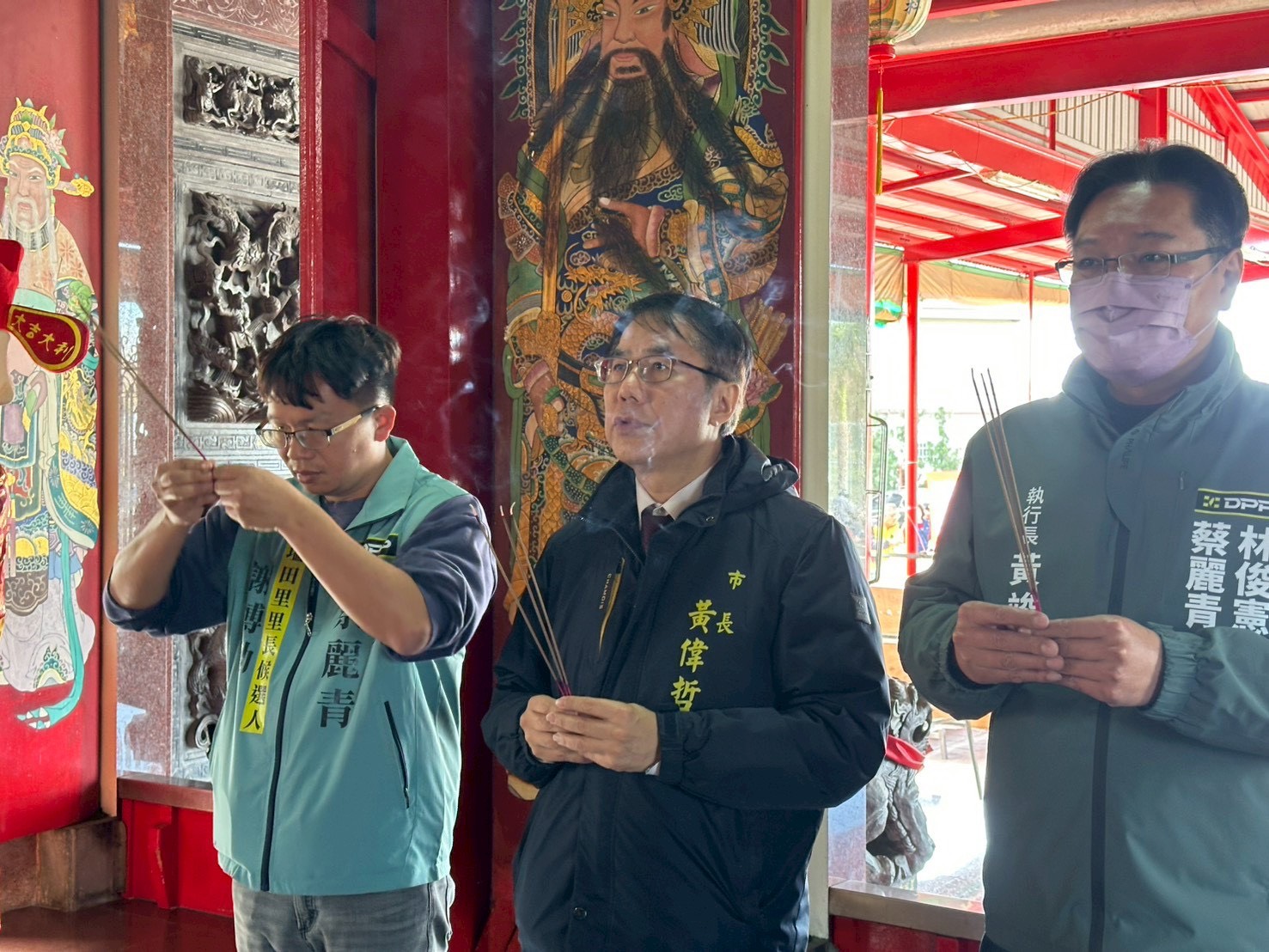 ▲市長黃偉哲還與市議員蔡麗青團隊一起前往附近廟宇祈求國泰民安、風調雨順。(市議員蔡麗青 提供)