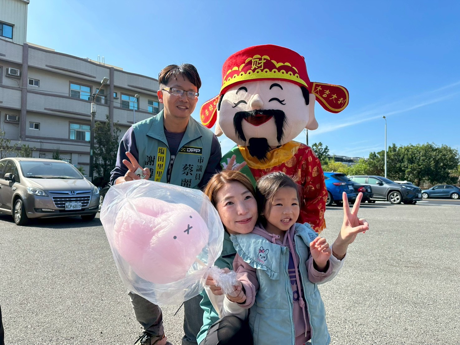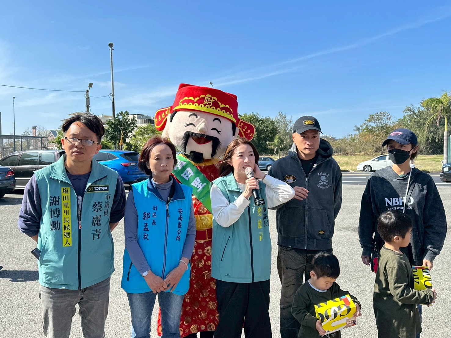 ▲安南尚青新春公益活動最終站 市長黃偉哲到場鼓勵,發放小福袋。(市議員蔡麗青 提供)