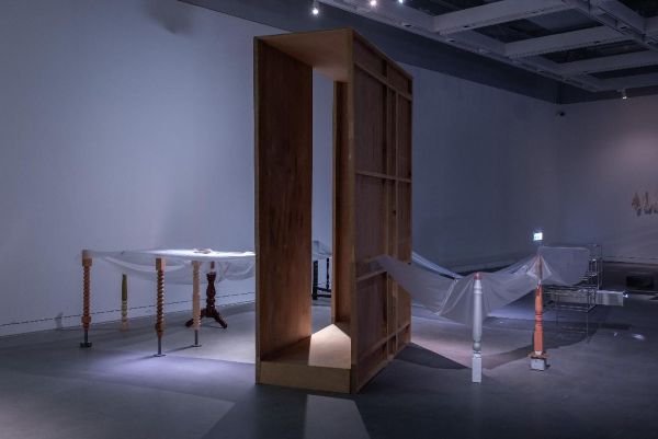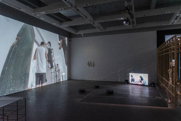 陳亮璇〈橫山豐水〉以日本水梨在臺嫁接的產銷歷程為核心,3組分割鏡頭隱喻天空、人與土地的關係,堆疊的水果紙箱象徵山陵起伏。當觀者移動到特定視角時,3組影像合而為一,達到視覺與身體感的「空間嫁接」。張宸瑋〈Volkswagen Transporter T5.gltf〉取材自俄烏戰爭, 3D影像技術將毀損汽車的數位模型轉譯覆蓋於軟性布料。在沉重戰爭議題與輕盈媒材間,重新省思個體與遠方災難的關係。楊傑懷〈Working Holiday〉結合綠島人權文化園區的參與式行動,藉由戀愛實境秀的偽紀錄片形式,檢視藝術家與「小幫手」的勞動交換關係,歷史空間的沉重感消解轉化為對日常生活的想像。