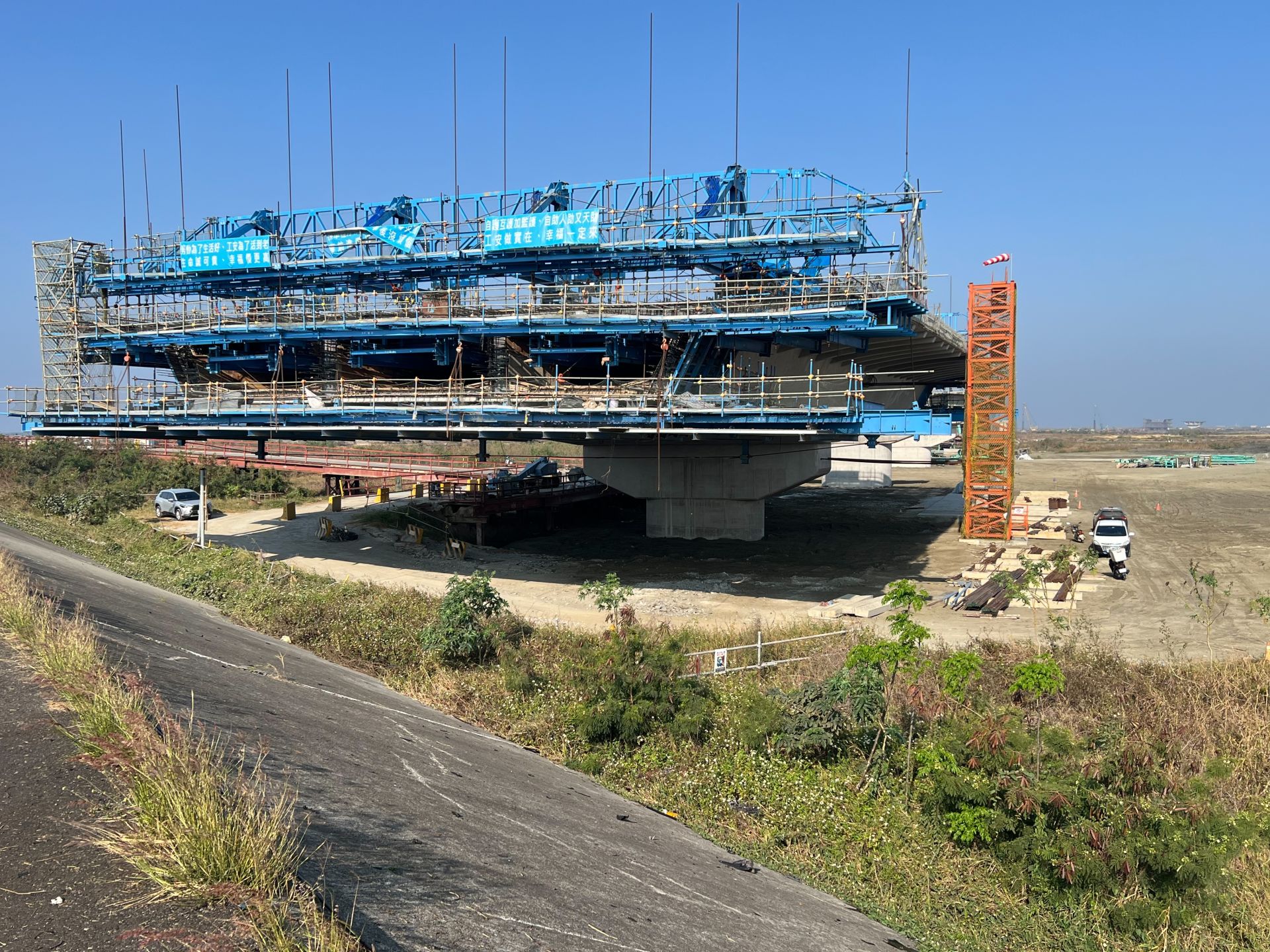 ▲悚!奧迪自撞堤防「衝上施工高架」秒變廢鐵 30歲駕駛受困車內死亡(圖/民眾提供)