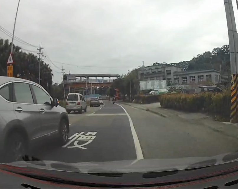 根據投訴人提供的影像與自述,當天上午他行經新竹橫山國中附近的外側車道,車上還載著老父親。原本平穩行駛中,內側車道的一輛自小客車卻在未保持安全距離、疑似也未觀測後方死角的情況下,突然向右大幅度切換車道。
