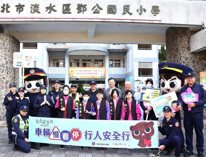▲淡水分局於鄧公國小執行護童勤務。(圖/新北市政府警察局婦幼警察隊提供)