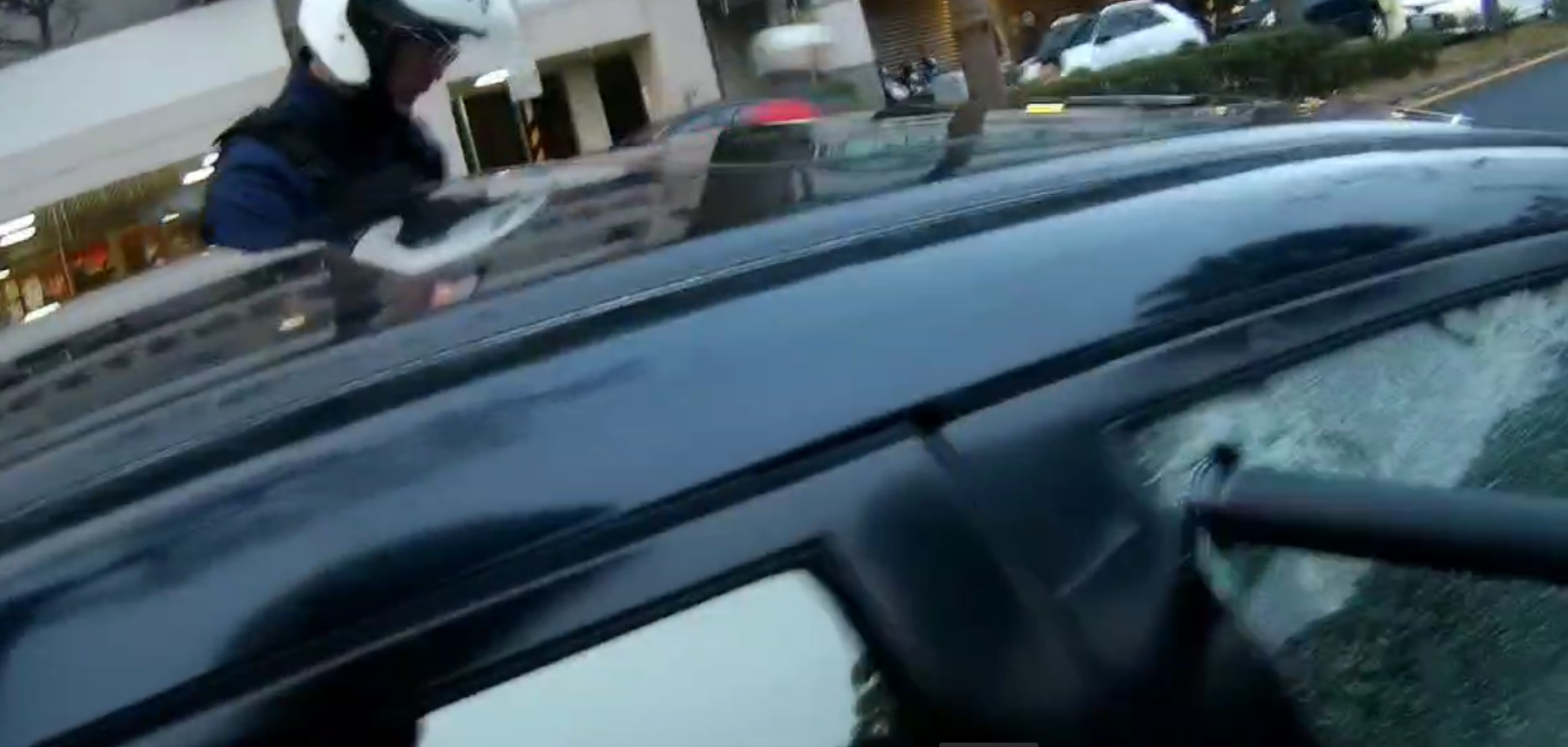 員警敲破藏毒拒檢自小客車車窗強制逮人。翻攝畫面