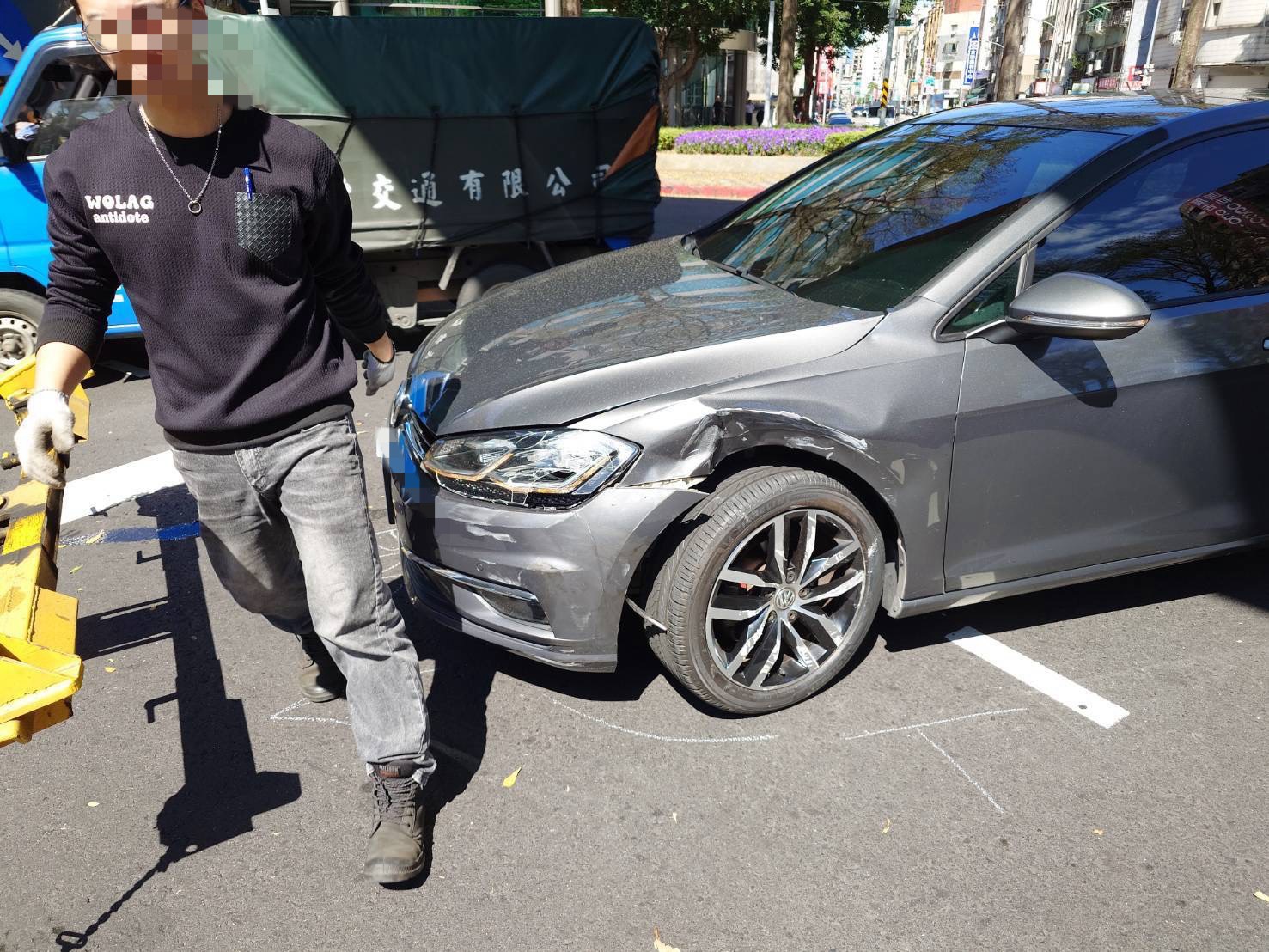 大安分局指出,2月23日11時9分,28歲趙姓男子駕駛多元計程車沿基隆路第一車道北向南行駛至基隆路和平東路口,欲向右變換車道超越前方營大車時,因未注意其他車輛,右前車身與後方同向第二車道由33歲張姓女子駕駛的自小客車左側車身發生碰撞。