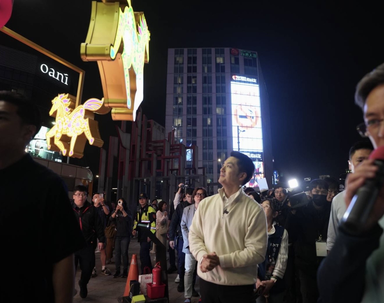 蔣萬安特別推薦捷運站上方的「星星人」燈飾,今年以青花瓷紋理呈現,眼睛內藏兩匹小馬寓意吉祥。他笑說,適逢馬年,自己又屬馬,「安太歲之餘,也要記得安太座」,並表示會帶家人一起來感受節慶氛圍。