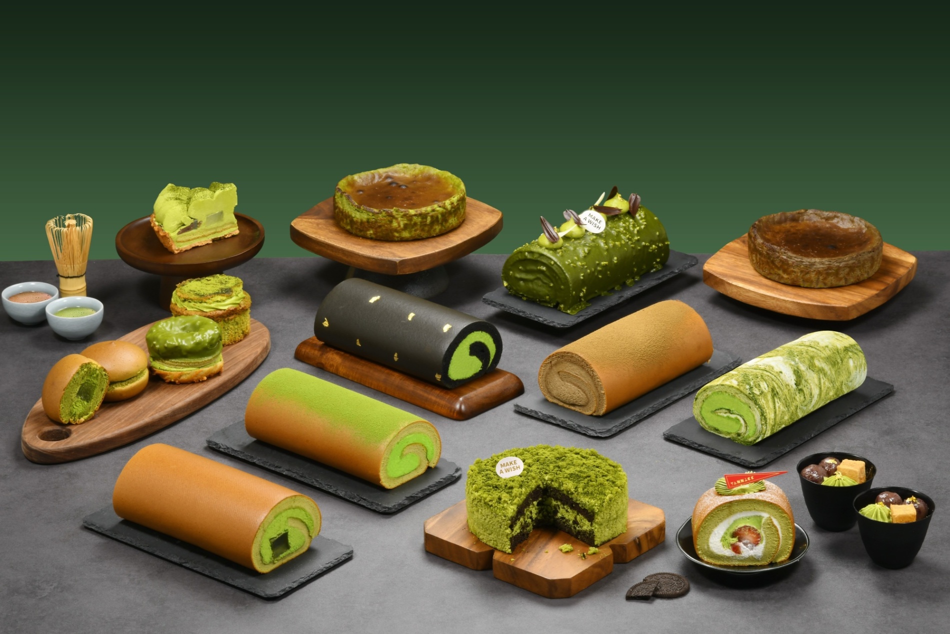 本次以「極致雙茶饗宴」為主題,選用100%依循古法研製的宇治一番茶,融入北海道奶霜,強調茶韻厚實與回甘層次。全系列包含7款生乳捲、3款圓形蛋糕及7款切片點心,鎖定抹茶與焙茶愛好者。