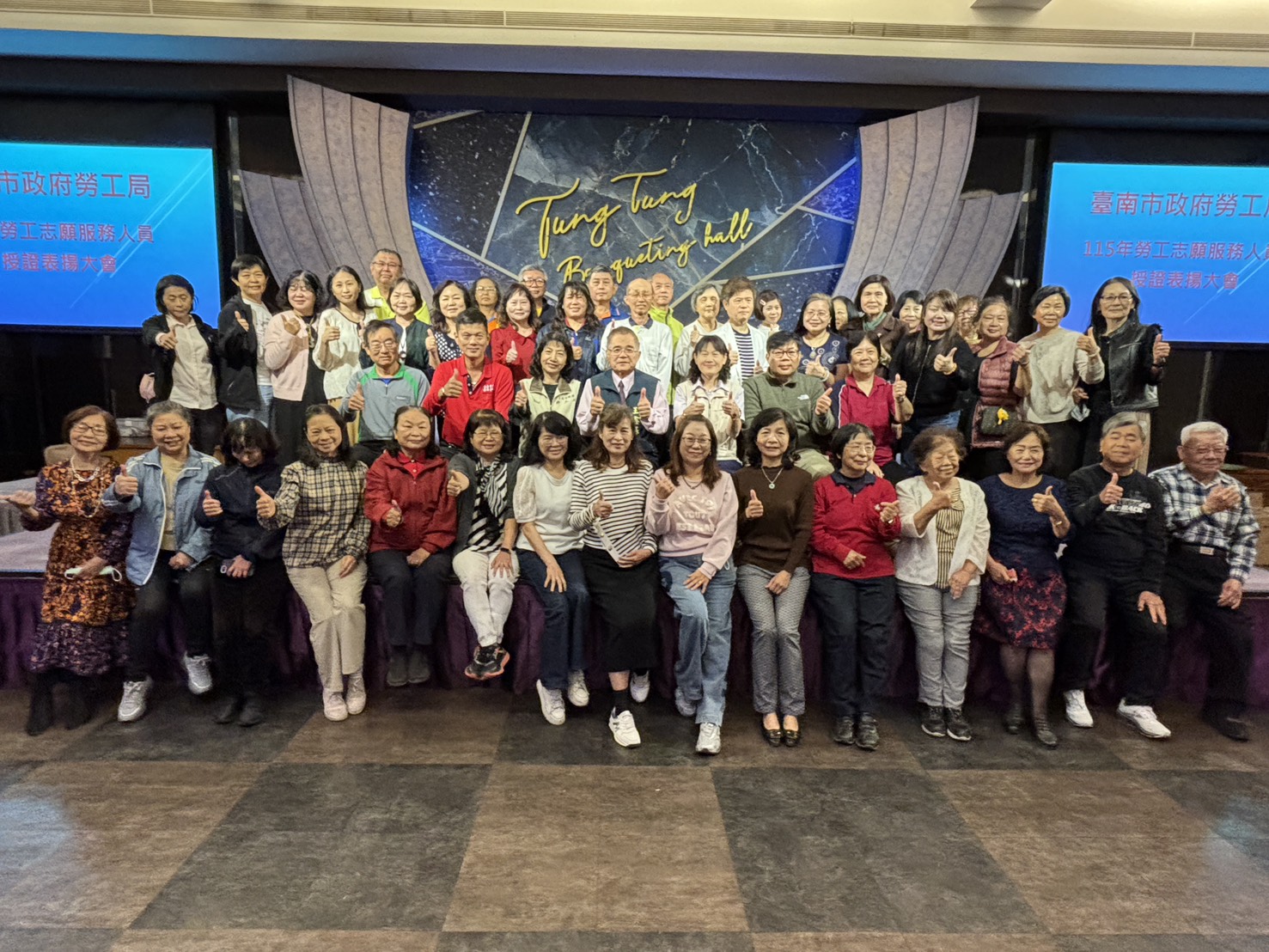 臺南市政府勞工局於今(7)日上午舉行志工授證暨表揚大會,秉持市長黃偉哲打造「希望家園」的施政願景,由王鑫基局長主持授證及表揚優秀志工,並藉此機會向長期投入志願服務工作的志工夥伴致上誠摯感謝。志工們多年來陪伴勞工朋友走過困境,協助找回生命的希望,是市府推動勞工事務最堅實的重要助力。今年更有翁天佑、黃聰源兩位志工服務滿30年,這份無私奉獻精神令人敬佩,不僅協助市府服務本市勞工,也為各項勞工政策順利推展奠定穩固基礎。