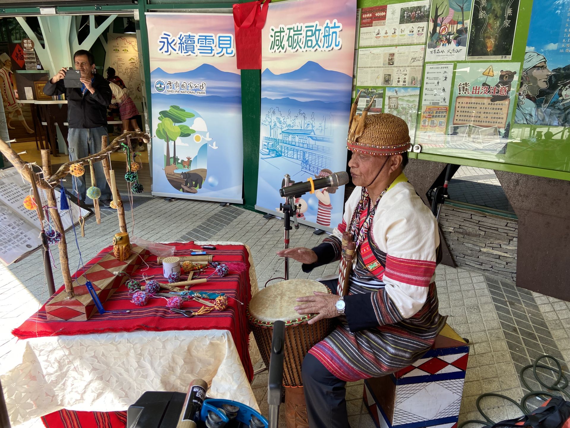 雪見遊客中心舉辦「永續雪見 減碳啟航」-雪見遊客中心暨管理站場館服務碳足跡揭牌儀式-梁老師口簧琴演出揭開序幕
