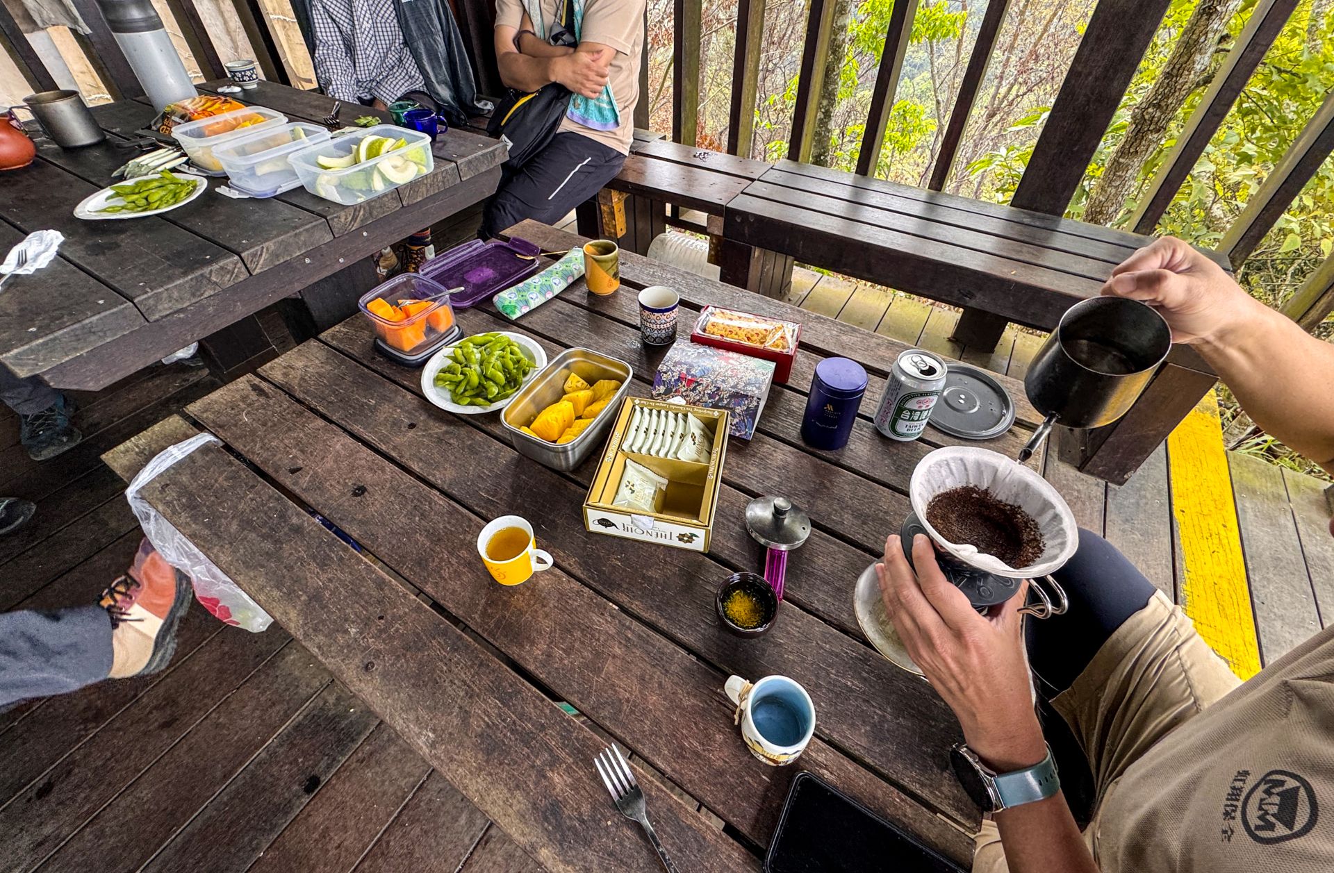 清涼亭上熱情寒暄的山友   (視傳媒記者 趙明慧/台中攝影)