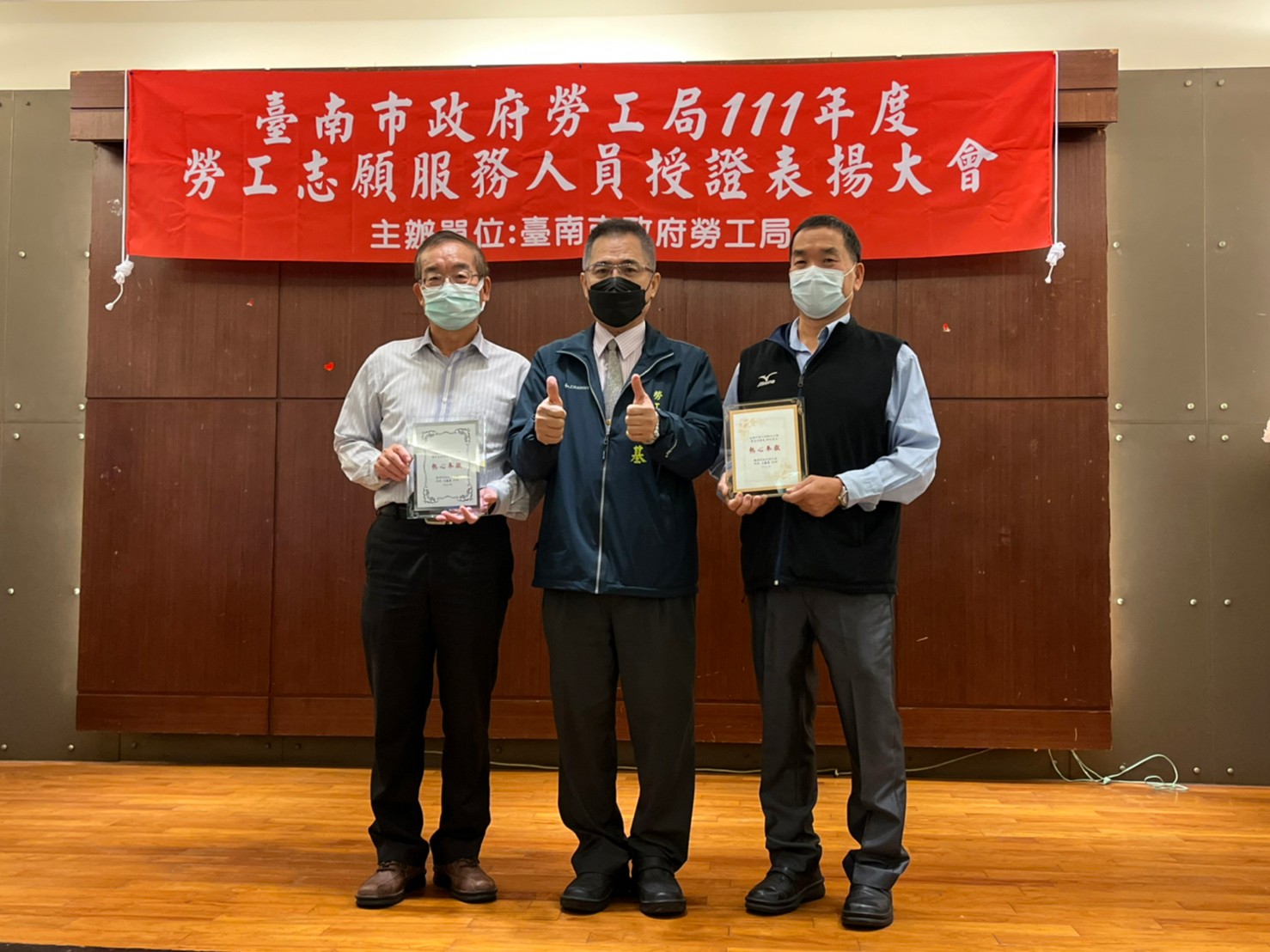 臺南市政府勞工局授證表揚年度優秀勞工志工